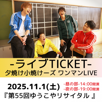 【ライブチケット】 2025年11月1日(土) 夕焼け小焼けーズ ワンマンライブ 『第55回ゆうこやリサイタル』