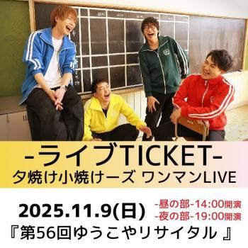 【ライブチケット】 2025年11月9日(日) 夕焼け小焼けーズ ワンマンライブ 『第56回ゆうこやリサイタル』